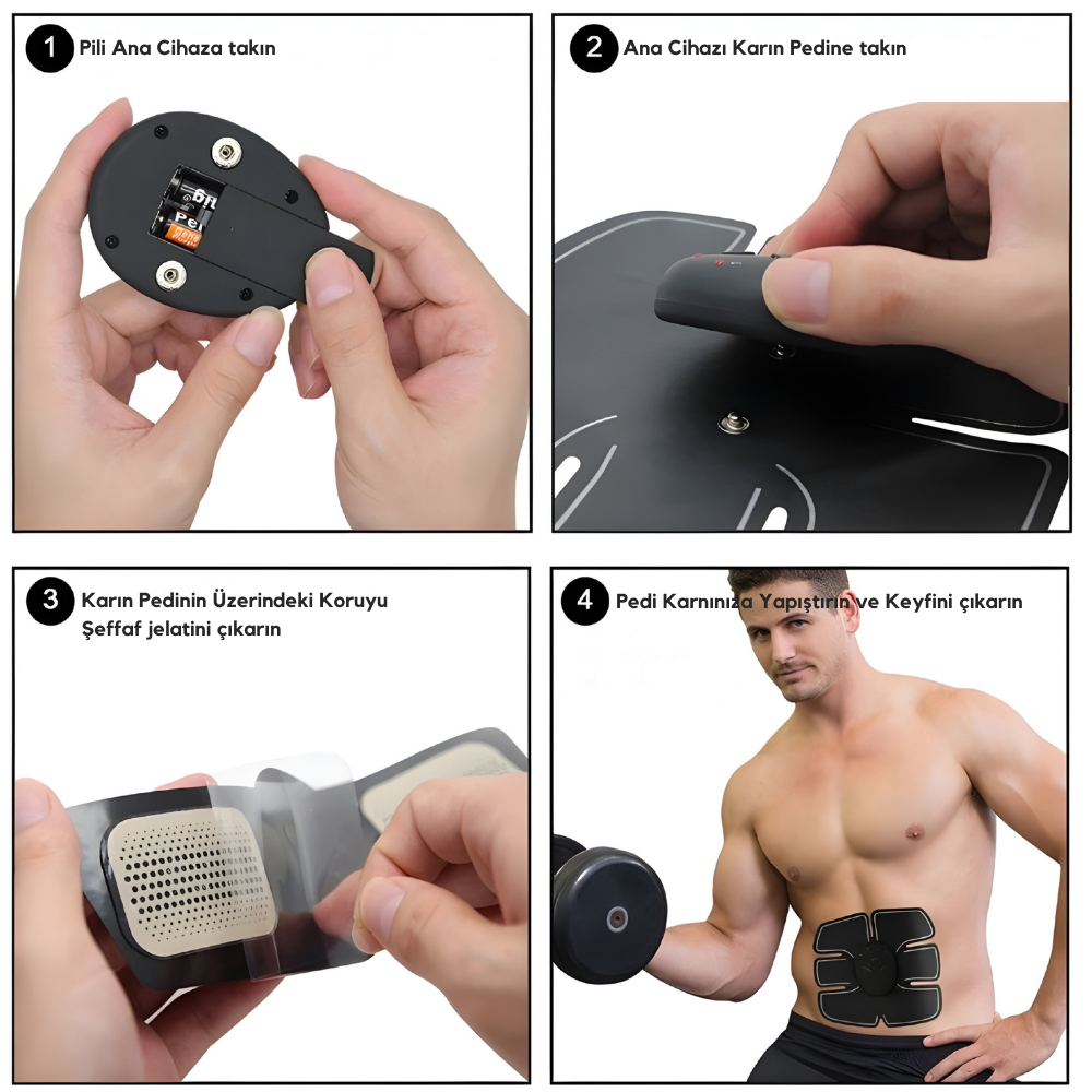 EMS (Elektriksel Kas Uyarımı) teknolojisi sayesinde karın kaslarına düşük frekanslı elektrik sinyalleri gönderir. Bu sinyaller kasların kasılmasını sağlar ve düzenli kullanımda kas aktivasyonunu artırmaya yardımcı olur.