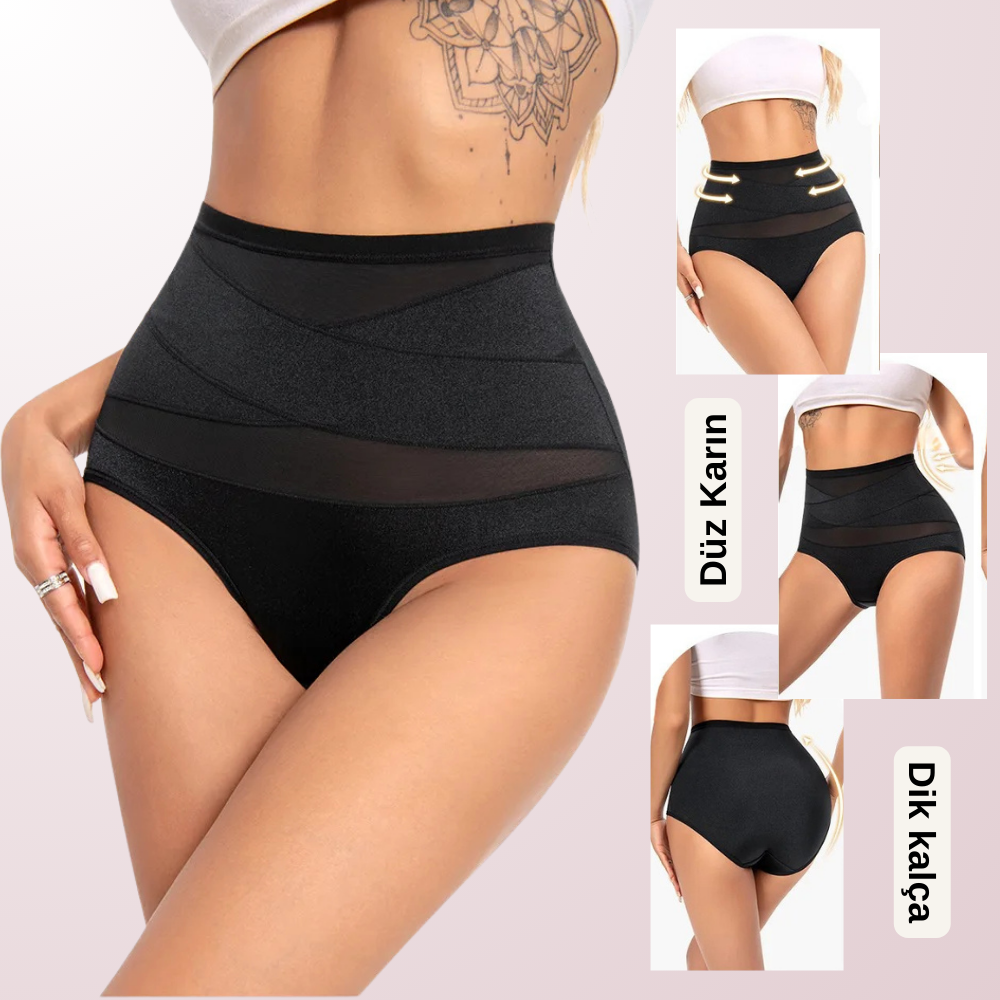 Ultra yüksek bel tasarımı ile göbekten göğüs altına kadar anında kontrol sağlar.